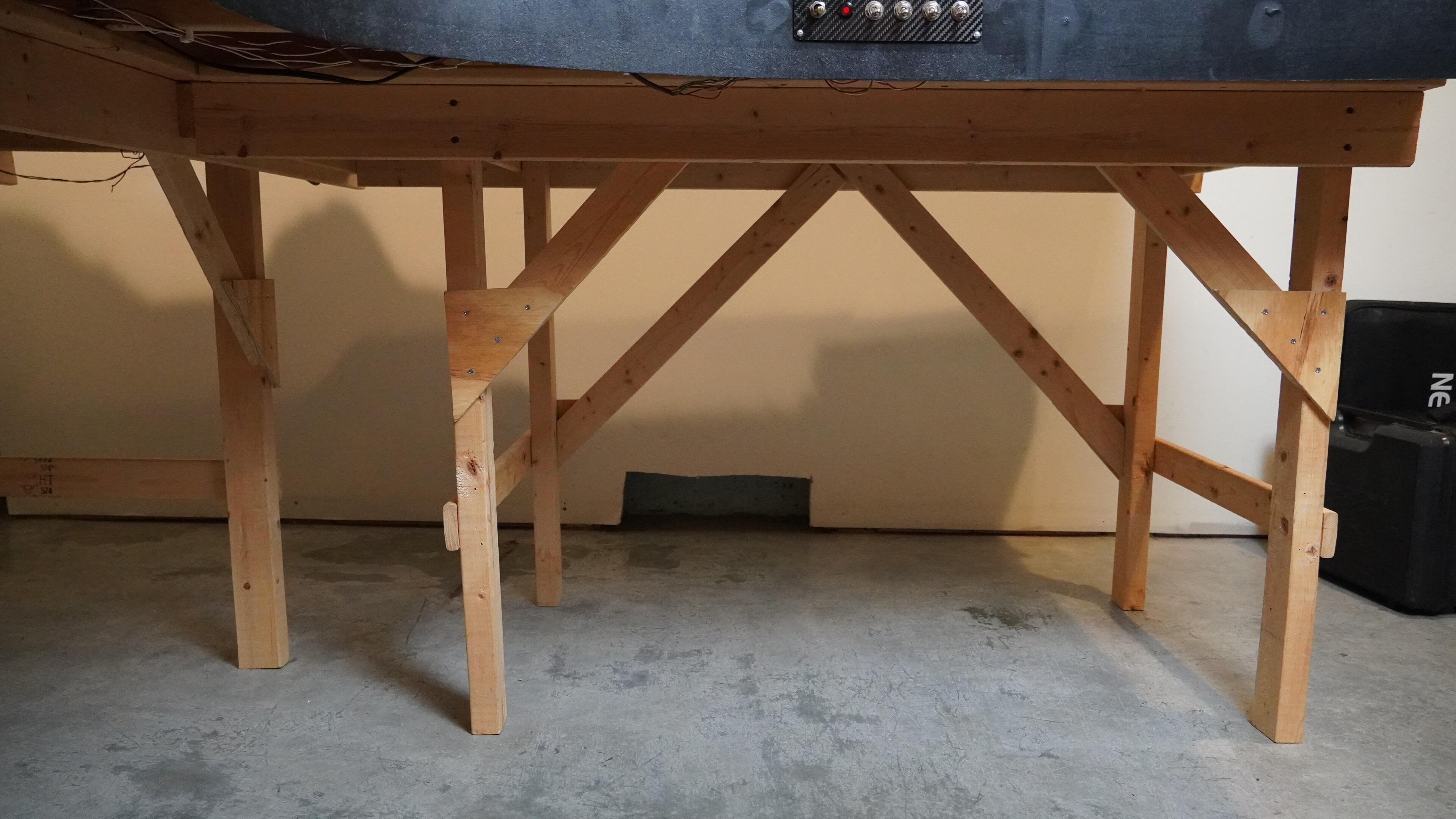 Bracing: The layout must be moved as a single piece, with proper bracing. My thought is to install long 2×4 braces spanning the layout to lock the legs and prevent any flex that would otherwise damage the track.